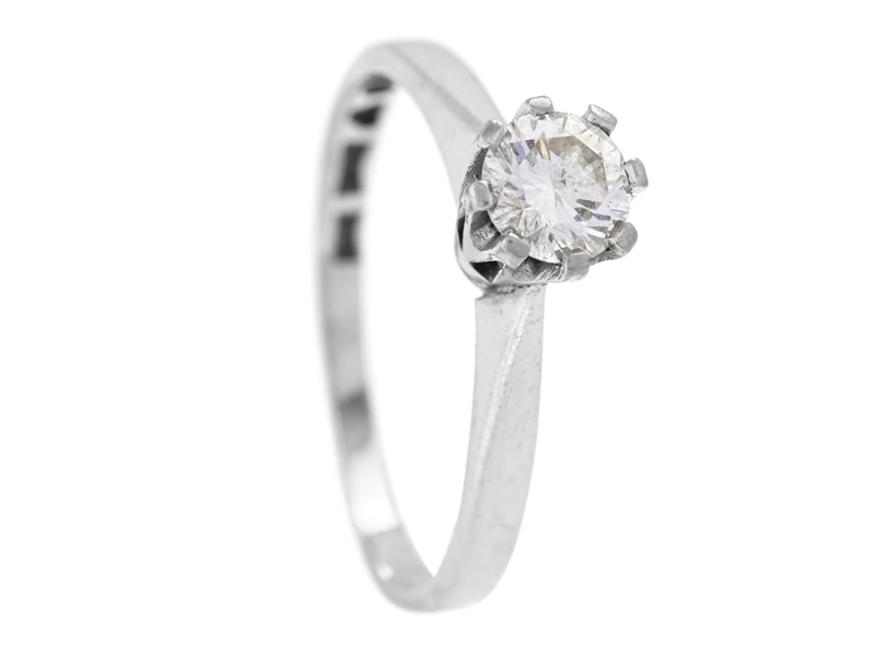 SOLITAIRE RING, 18K white gold, brilliant cut diamond 0,44 ct according to engraving, approx. TW/VS, size 17,25 mm, weight 3,1 g.