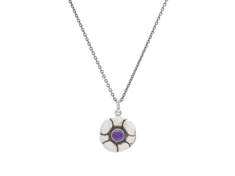 GEORG JENSEN, pendant with chain, Moonlight blossom, sterling silver, amethyst, length 45 cm.