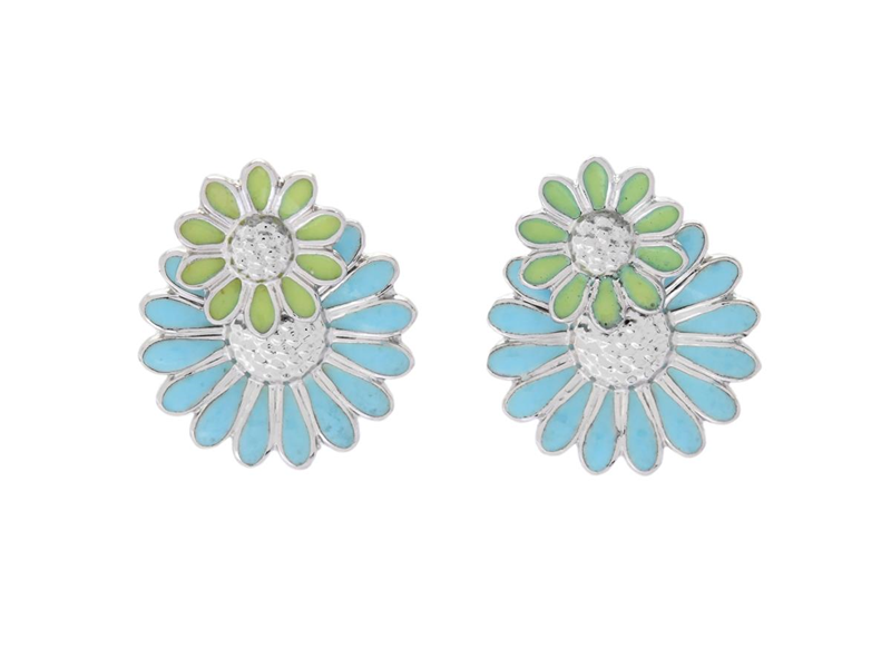 GEORG JENSEN, earrings, sterling silver, blue and green enamel, Daisy, height 12 mm, pushback, weight 2,5 g.
