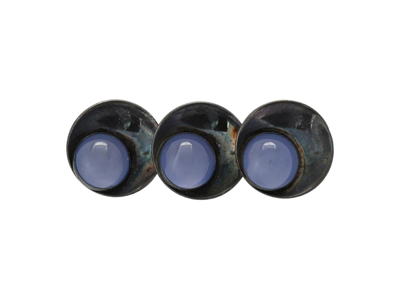 HUGO GRÜN, brooch, sterling silver, cabochon cut blue chalcedony, Denmark 1900-century centre.