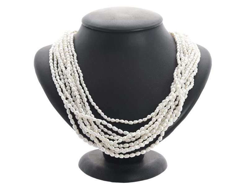 PEARL NECKLACE, 10 rows, keshi pearls, clasp in 14K gold, length approx. 54 cm, weight 88 g.