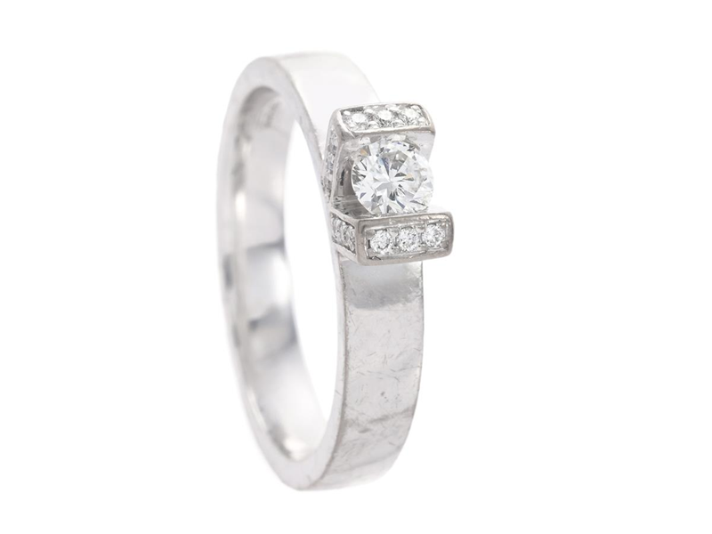RING, 18K white gold, brilliant cut diamond approx. 0,22 ct, approx. TW/SI, 30 brilliant cut diamonds approx. 0,18 ctw, approx. TW-W/VS-SI, Iduna, size 17,75 mm, weight 7,4 g, center stone is unmounted in its setting and small notches on culet, signs of wear on ringshank.