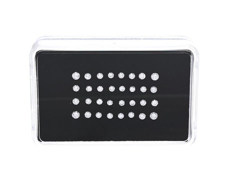 32 DIAMONDS, brilliant cut, 1,35 ctw, approx. R-W/VVS-SI, approx. 2,0-2,7 mm, some diamonds has large spare facets, notches and small damages.