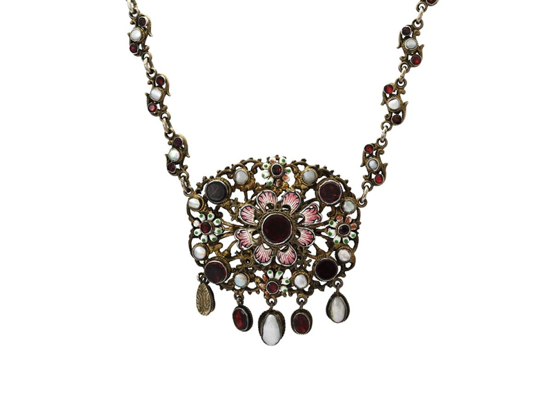 NECKLACE, silver, red glass, enamel, mother-of-pearl, length approx. 42 cm, weight 58,6 g.