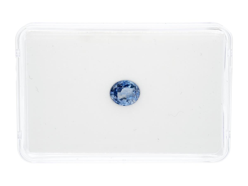 LIGHT BLUE SAPPHIRE, oval-cut, 2,09 ct, 7,9x6,8x4,3 mm, notches and inclusions reach the surface.