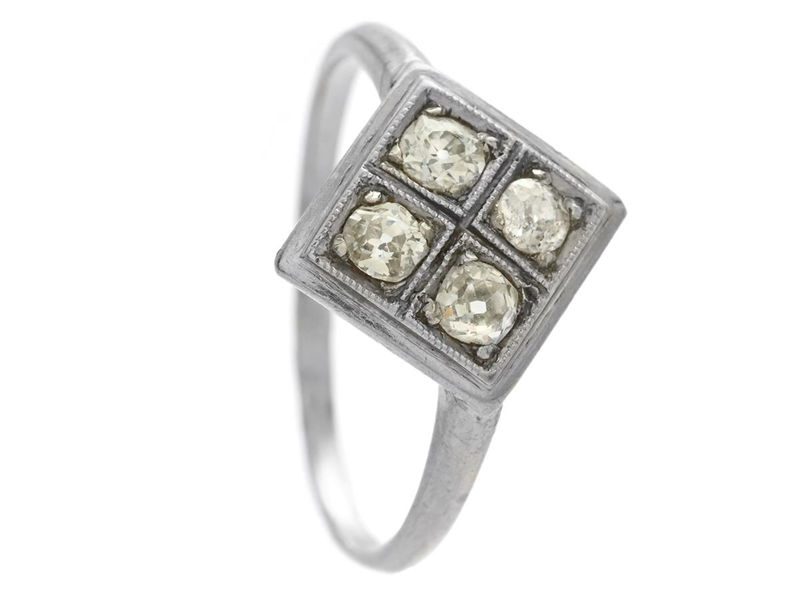 RING, platinum, old European cut diamonds approx. 0,32 ctw, approx. W-Cr/VS-P, size 17,25 mm, weight 3,0 g, diamonds with a few damages.