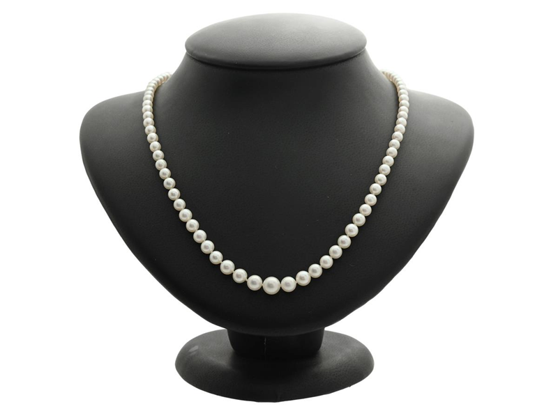 PEARL NECKLACE, cultured pearls approx. 3,5-7 mm, clasp in sterling silver, length approx. 49 cm, weight 14,6 g.
