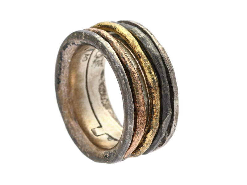 BJÖRG, ring, oxiderat/plated sterling silver, size 18,25 mm, weight 17,2 g, moving rings in the middle.
