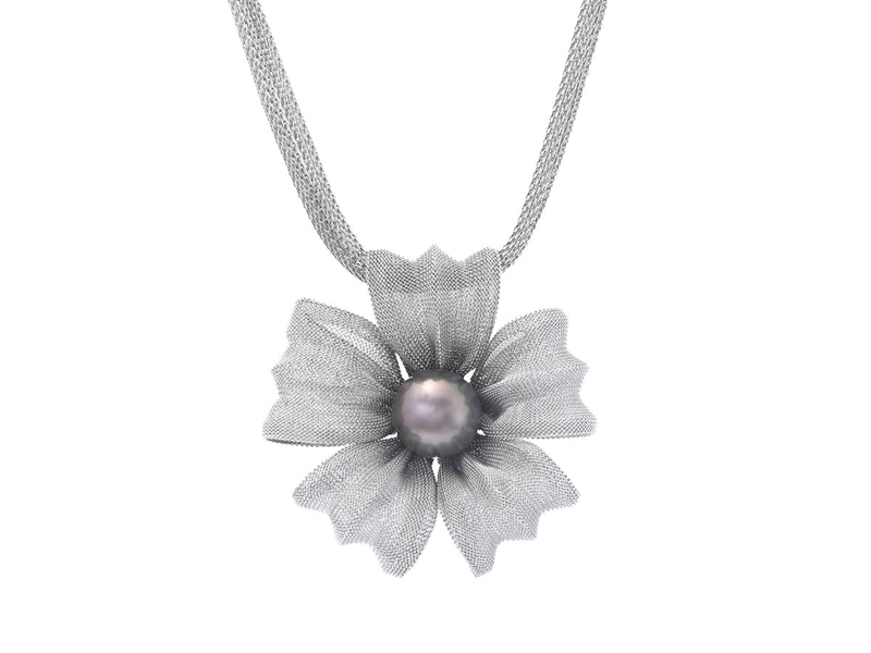 NECKLACE, white metal, Tahiti pearl approx. 12 mm, height 45 mm, length 40-46 cm, weight 18,7 g.