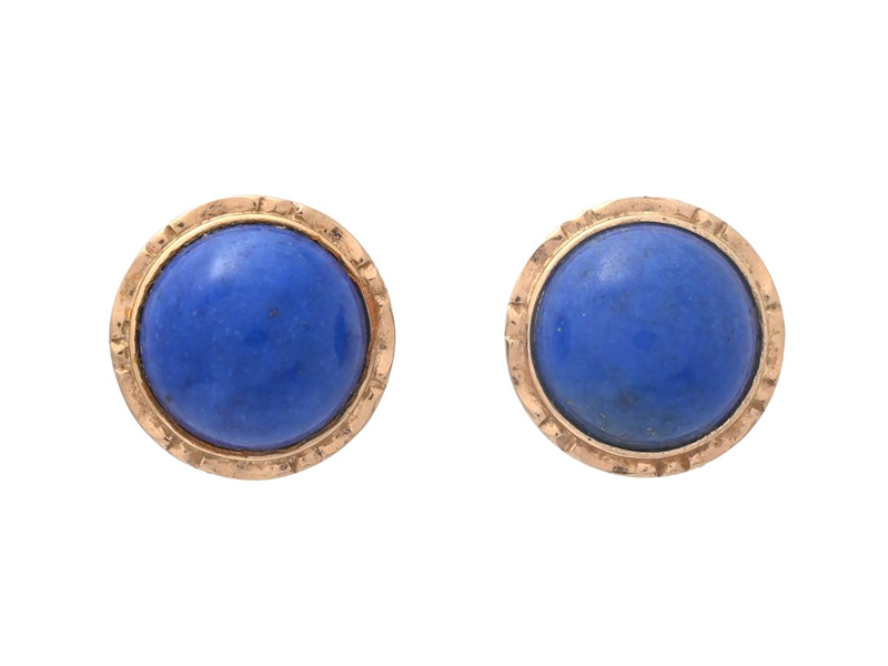 EARRINGS, 14K gold, cabochon cut lapis lazuli, pushback, weight 2,3 g, missing 1 stop.