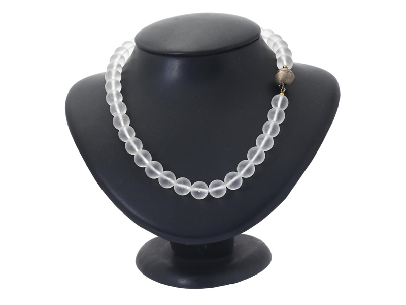 NECKLACE, rock crystal beads approx. 10,3 mm, clasp in gilt silver, length 43 cm, weight 60,3 g.