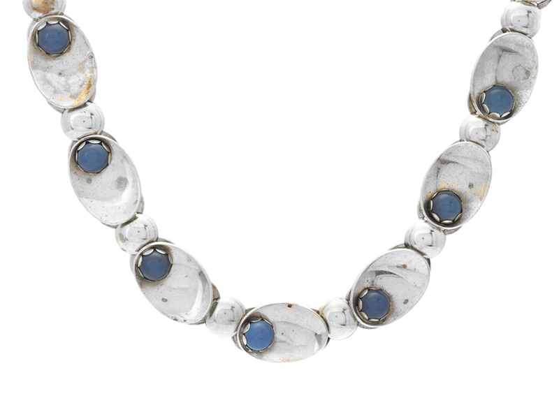 NECKLACE, silver, blue chalcedony, Alton, Falköping 1955, length 40,5 cm, weight 52,3 g.