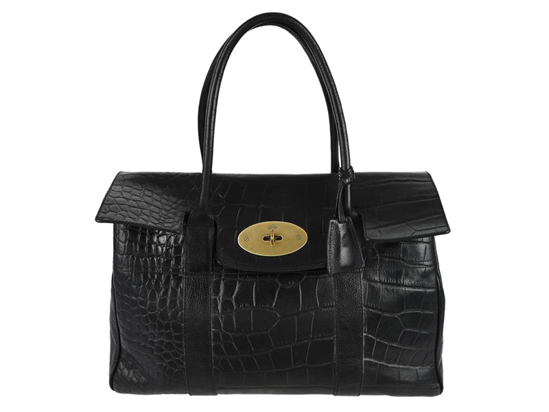 BAG, MULBERRY, Bayswater Bag, black embossed leather, brass-coloured hardware, 37x22x16 cm, dustbag.