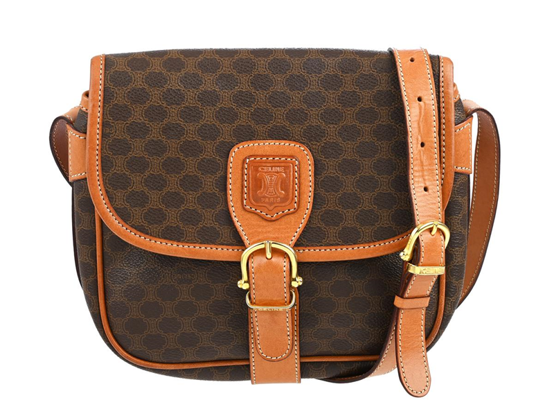 BAG, CELINE, Buckle Flap Crossbody, brown leather, canvas, gold-tone hardware, 20x19x6 cm.