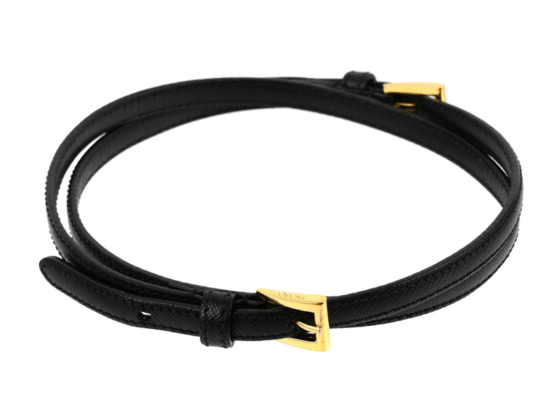 BELT, PRADA, black saffiano leather, gold-tone buckle´s, length 85 cm, width 1 cm, signs of wear.