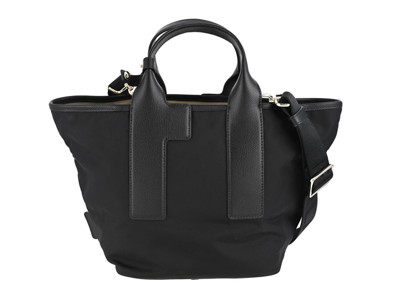 BAG, FURLA, black nylon, black leather, gold-tone hardware, 21x23x15 cm, detachable shoulder strap.