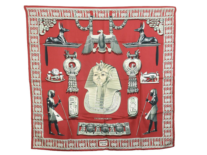 SCARF, HERMÈS, Tutankhamun, Vladimir Rybaltchenko, 100% silk, 90x90 cm, red, green, black.