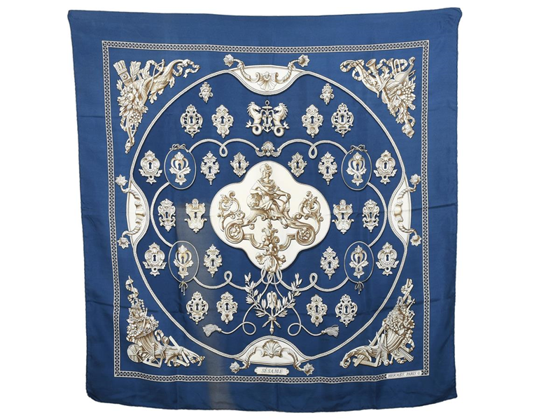 SCARF, HERMÈS, Sé Same, Ledoux, 100% silk, 90x87 cm, multi-coloured, blue, white, brown, signs of wear.