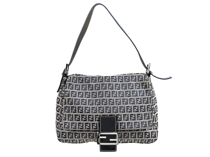 BAG, FENDI, Mama Forever, blue, grey canvas, blue leather, silver-tone hardware, 28x19x11 cm.