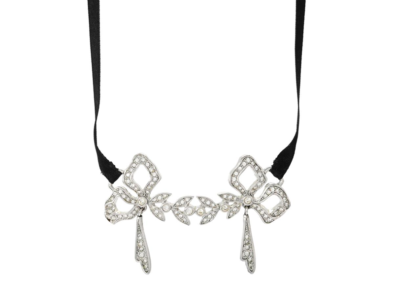 NECKLACE, DIOR, silver-tone metal, white stones, black fabric tape, length 83 cm, weight 16,7 g.