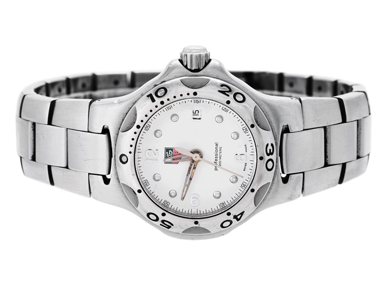 TAG HEUER, Kirium (200 Meters), Serial no. ZD5649, Case no. WL1310-0, ladies´ wristwatch, 28 mm, steel, quartz, sapphire crystal, date, damaged hand, defect (not working), integrated original bracelet, Ref no. BA0708-MO-J6, length 160 mm, folding clasp, approx. 2000.