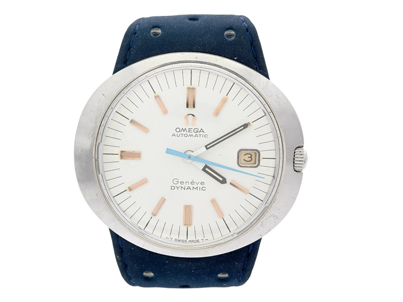 OMEGA, Genève, Dynamic I (-T Swiss Made T-), Cal 565, Serial no. 25993892, Ref no. ST 166.039, Case no. 135.033/136.033/165.039/166.039, men´s wristwatch, 41 x 36 mm, steel, self winding, plastic crystal, date, integrated leather strap, original buckle, approx. 1968.