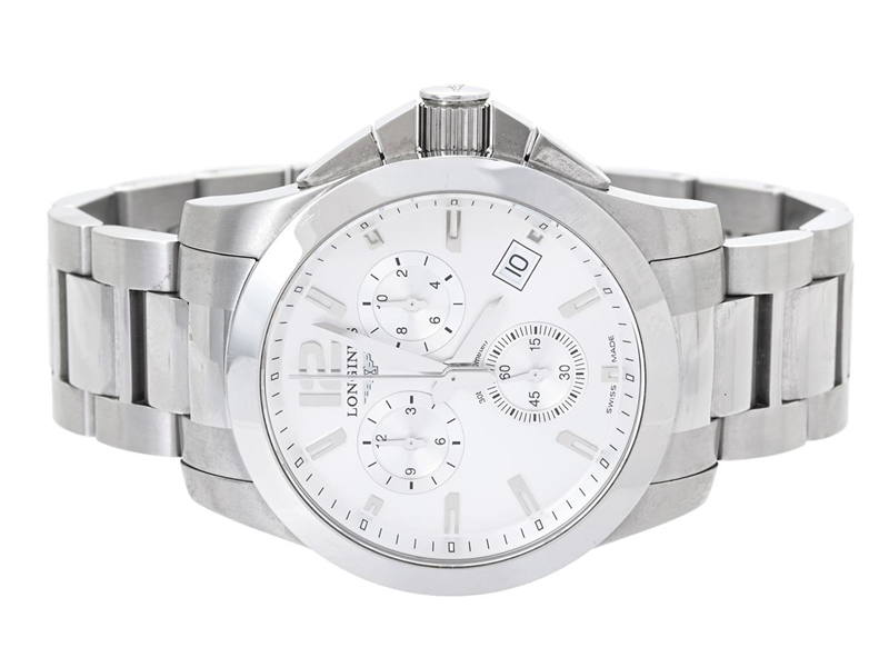 LONGINES, Conquest (30 bar (300meter), Cal 541, Serial no. 41828826, Ref no. L3.660.4.76.6, Case no. L3.660.4, chronograph, men´s wristwatch, 41 mm, steel, quartz, sapphire crystal, date, original bracelet, folding clasp, Ref no. L600131393, certificate, November 2014, box (damaged), paper box.