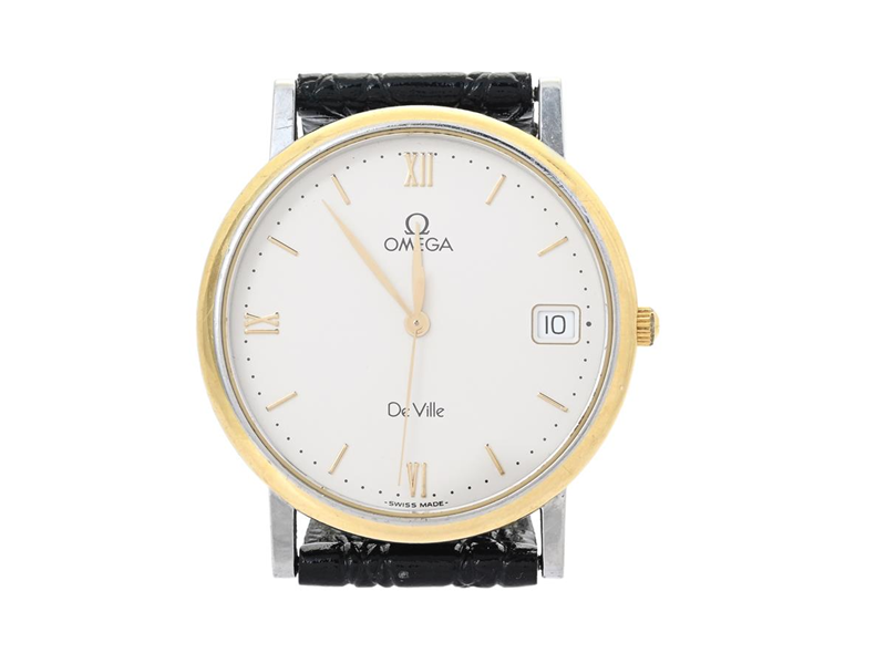 OMEGA, De Ville, Classic, Cal 1432, Serial no. 54608056, Case no. 196.2432 (LL), steel/gold, quartz, sapphire crystal, date, leather strap (see detailed info), approx. 1993.