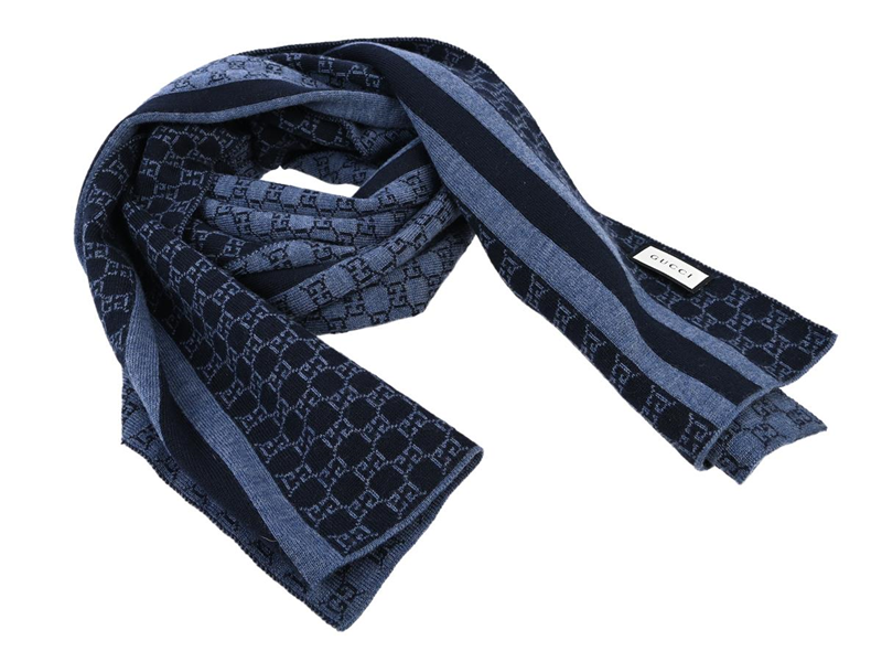KNITTED SCARF, GUCCI, GG logo, 100% lana wool, blue, 30x200 cm, pulled threads.