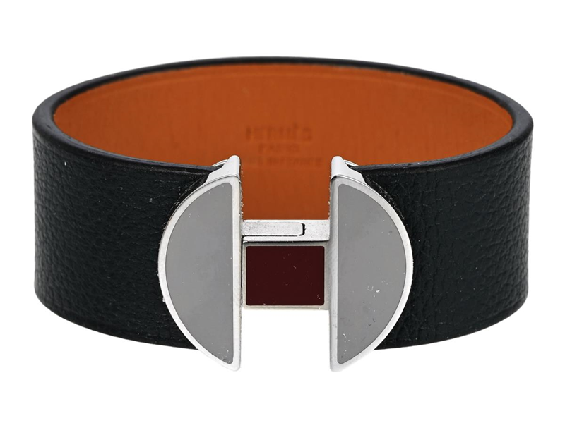 BRACELET, HERMÈS, Cuff Bracelet 2002, dark green leather, silver-tone hardware, diameter 5 cm, marked T2, D NM, 002NZ, case.
