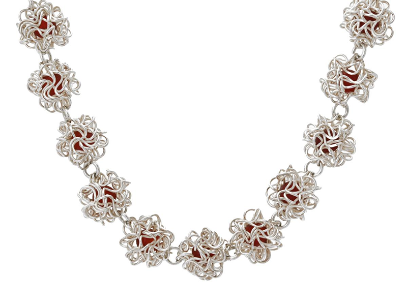 MALTE STRÖM, necklace, sterling silver, carnelian, Stockholm 2001, length 47 cm, weight 107,3 g. (d)