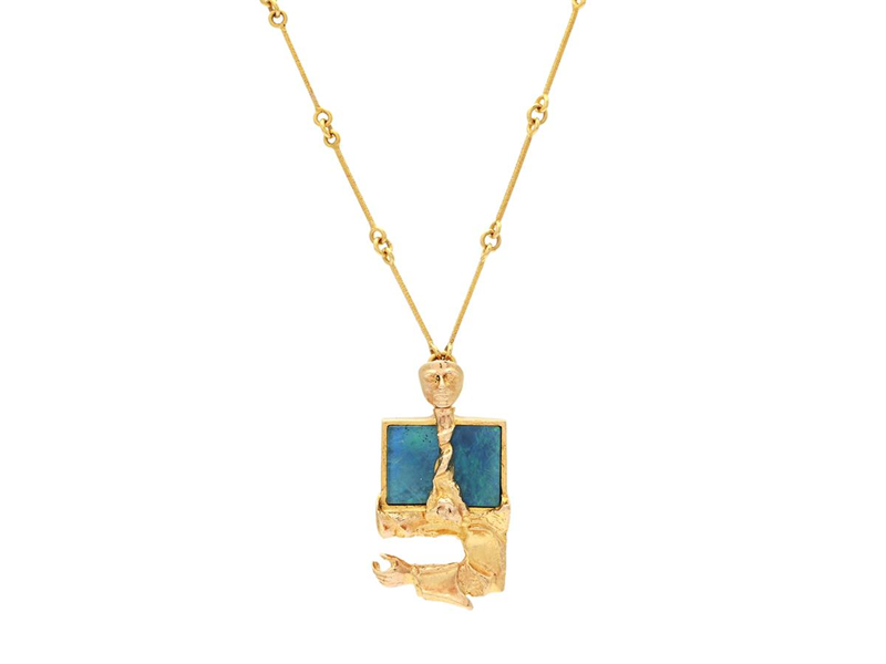 LAPPONIA, necklace, Zeno, 14K gold, opal triplet, Björn Weckström, Finland 1979, height 28 mm, length 42 cm, weight 7,5 g, original bag.