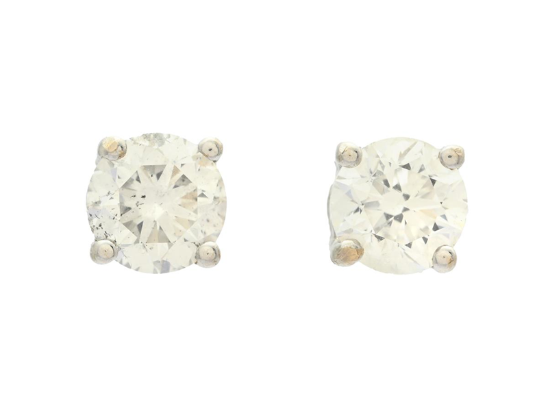 SOLITAIRE EARRINGS, 18K white gold, brilliant cut diamonds approx. 0,90 ct, approx. TW-W/P, pushback, weight 1,7 g, one diamond is cloudy.