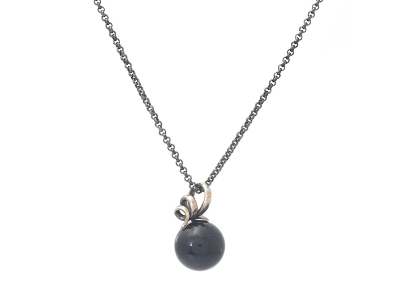 GEORG JENSEN, pendant with chain, Moonlight Grapes, oxidised sterling silver, black agate, length 40-42-45 cm,