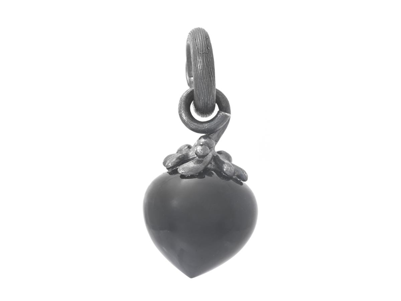 OLE LYNGGAARD, charm, Dew drop, oxidised sterling silver, onyx, height 26 mm, weight 3,8 g.
