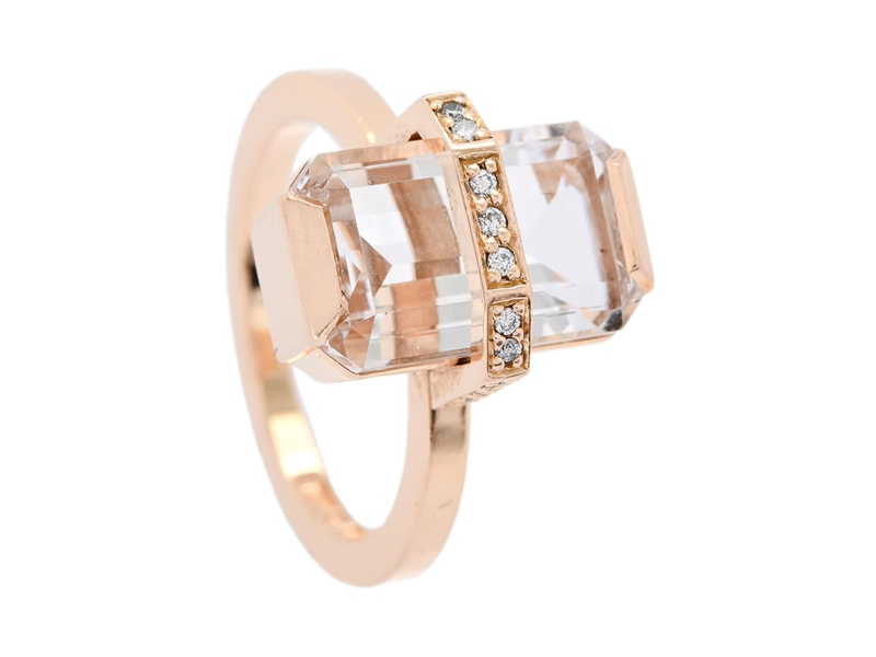 EFVA ATTLING, ring, Little Bend Over, 18K gold, rock crystal, 15 brilliant cut diamonds approx. 0,07 ctw, approx. TW/SI, size 16,5 mm, weight 7,1 g, original case, paper box.