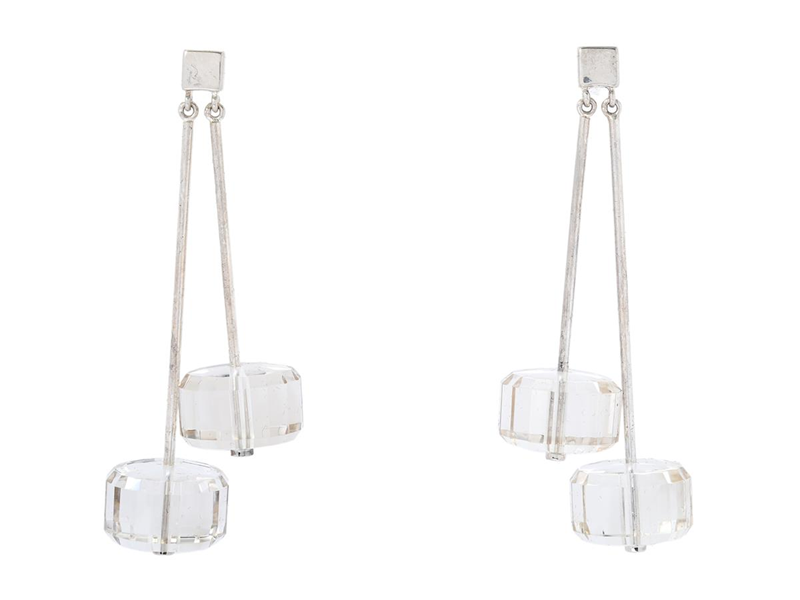 EFVA ATTLING, earrings, Crystal Disc, sterling silver, rock crystal, length 2,5 cm, weight 5.8 g. Case.