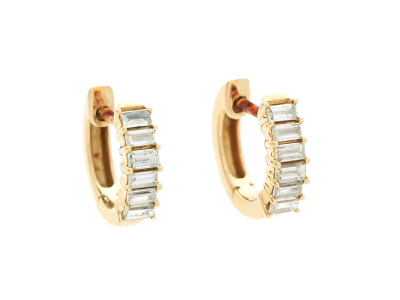 EARRINGS, 14K gold, 12 baguette cut diamonds approx. 0,45 ctw, approx. TW-W/VS-SI, huggies, weight 2,2 g.