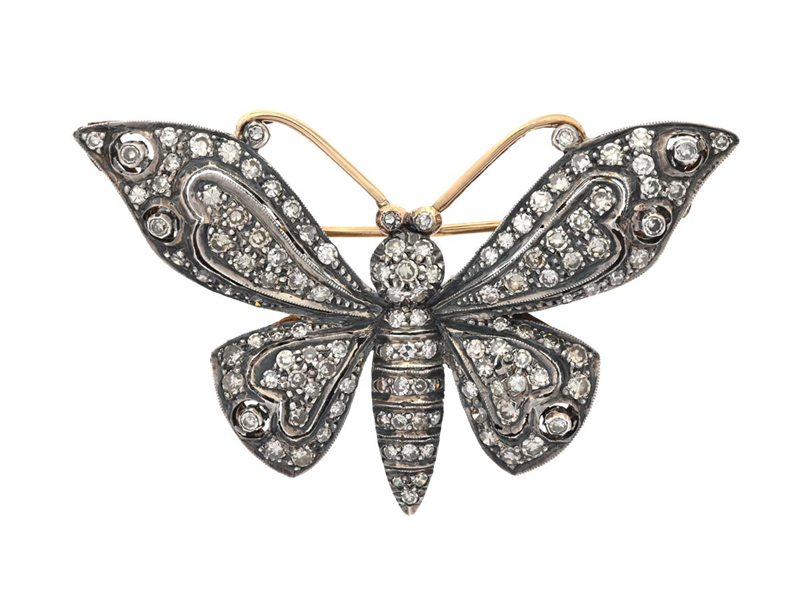 BROOCH, butterfly, silver/18K gold, single cut diamonds approx. 1,91 ctw, measurements 54x32 mm, weight 12,2 g.