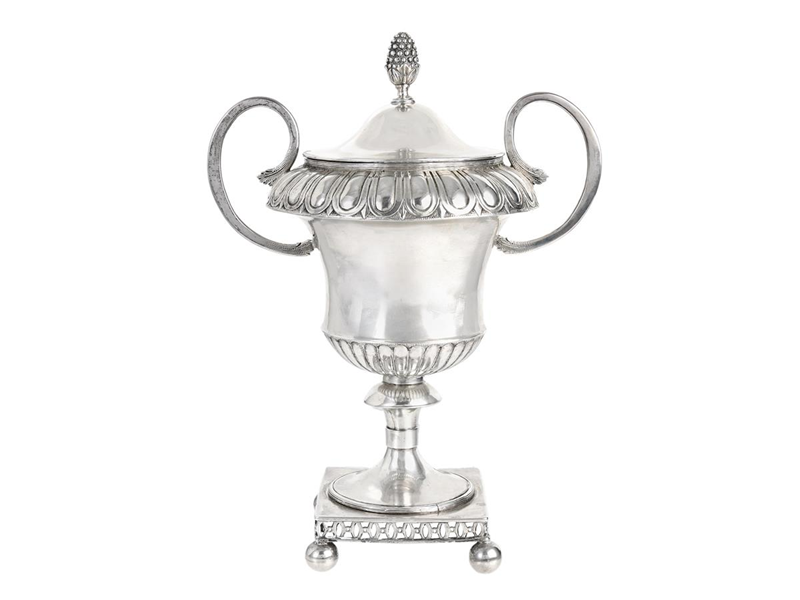 GUSTAF FOLCKER, sugar bowl, silver, handles, Empire style, Stockholm 1809, height 27 cm, weight 583,6 g.