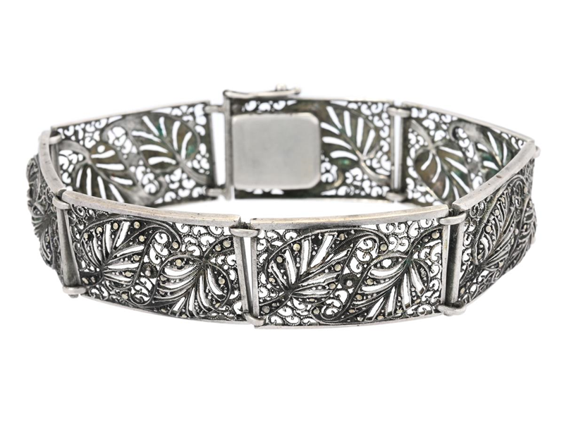 BRACELET, silver, marcasites, semi-rigid links, width 1,6 cm, length 19 cm, some stones missing, weight 20,6 g.