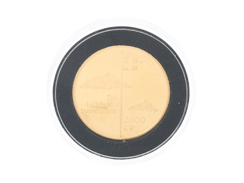 JUBILEUM COIN, 21,6K gold, "Två nationer i samförstånd", diameter 26 mm, disc and case, weight 12 g.