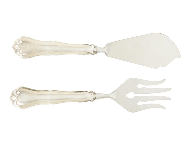 FISH CUTLERY/SERVINGCUTLERY, silver/steel, length knife 23 cm, fork 21 cm, weight approx. 121,8 g.