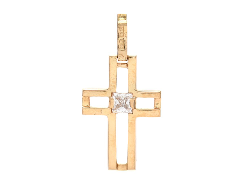 PENDANT, 18K gold, white stone, cross, length 2,5 cm, weight 1,2 g.