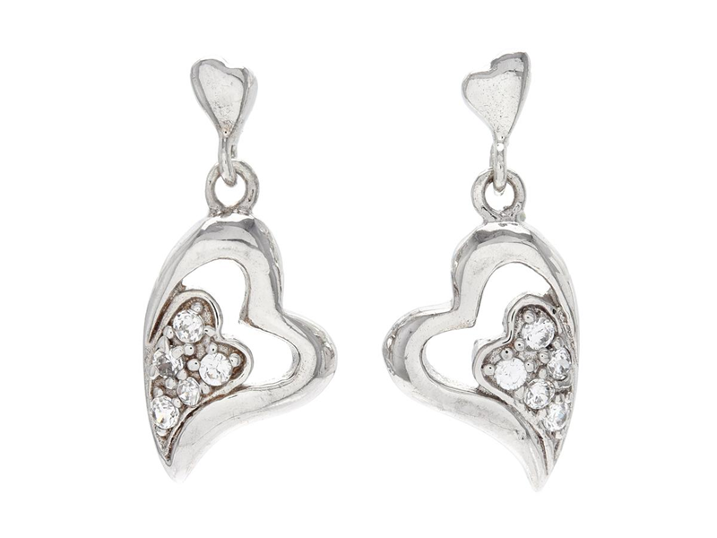 EARRINGS, sterling silver, white stones, hearts, height approx. 2 cm, pushback, weight 2,7 g.