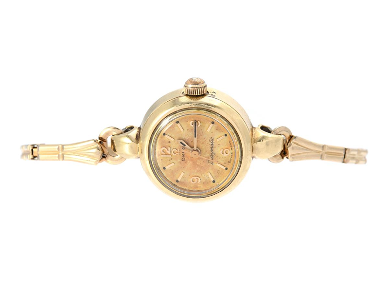 OMEGA, Ladymatic, Cal, Serial no., Ref no., Case no., ladies´ wristwatch, 19 mm, gold on steel, self winding, plastic crystal, approx. 19, metal bracelet not original.