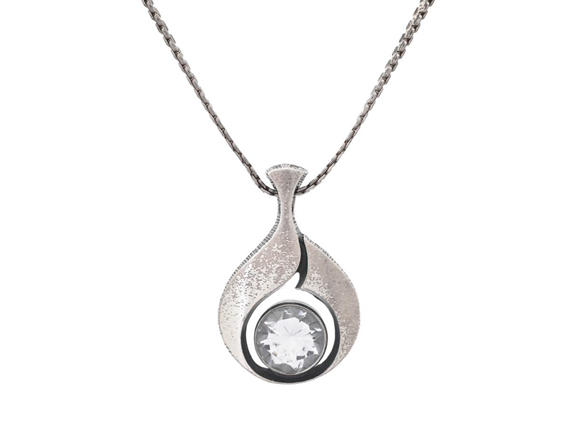 KARL LAINE, pendant with chain, silver, rock crystal, length 43 cm, signs of wear, weight 11,5 g.