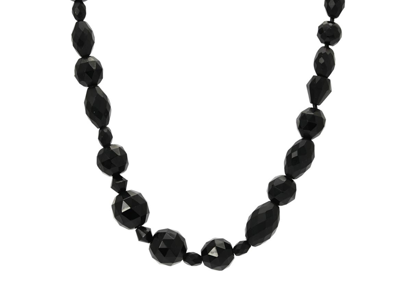 NECKLACE, faceted onyx, not openable, length approx. 90 cm, weight 81,3 g, notch.