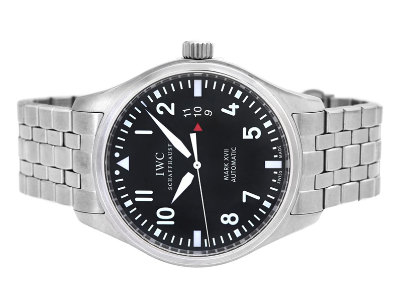 IWC, Schaffhausen, Fliegeruhr, Mark XVII, Cal 30110, Serial no. 3378363, Ref no. IW326504, Case no. 5136276, men´s wristwatch, 41 mm, steel, self winding, sapphire crystal, date, original bracelet, folding clasp, approx. 2014, box (damaged).