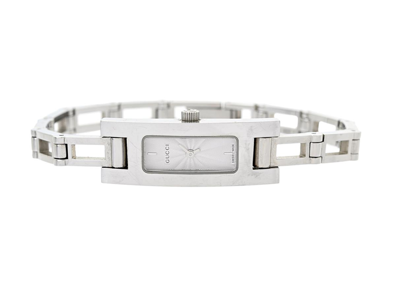 GUCCI, ladies´ wristwatch, 12 x 23,5 (34) mm, Serial no. 0095570, Case no. 3900L, steel, quartz, sapphire crystal, original bracelet, length 180-175 mm, certificate (not complete), approx. October 2007, box.